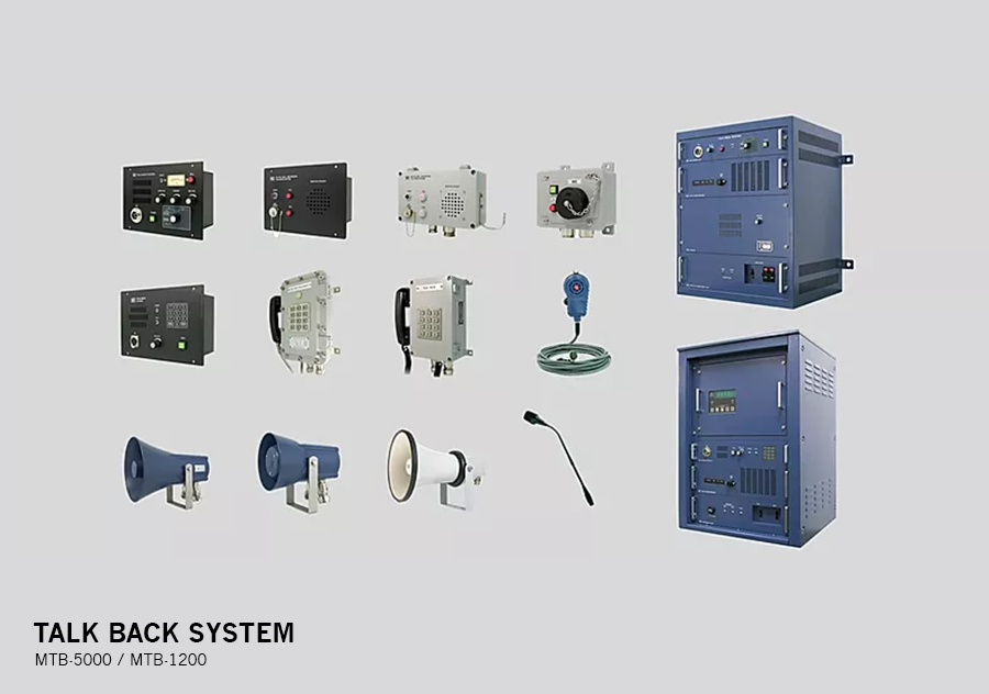 Talk Back System enables free broadcasting and telecommunication in a particular area such as deck and machinery areas in the ship. All substations can be called to the main and remote stations with the maximum capacity of 45 substations. It can be connected to the PAGA and the PABX system as well. Substations include four types: flush, wall, waterproof, and explosion-proof types, all of which can be interfaced to the Horn/Bell/Flashing Light, and the Foot Switch. This system has the functions of both ‘call in all’ and ‘call in group’ and of the automatic switch of power for the main and the emergency situations. The system was tested at the IEC60945 standard and approved for CE.-