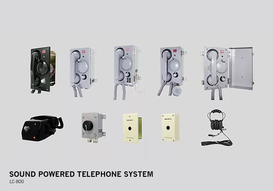 Sound Powered Telephone system is used for communicating with the wheel house, the engine control room, and the steering gear room in case of emergency and for communicating between the areas or rooms when necessary. Especially, being independent from the power supply of the vessel, this system allows for emergency communication at critical spots in the vessel even in case of power failure. It is manufactured to be a waterproof and dustproof appropriate for the vessel, and adopts the input power supply of 24V DC to deliver communications and signals (bell, lamp, etc.). This system includes the following types: flush, wall, waterproof, portable, and intrinsically safe (used for normal condition or in the area with the possibility of explosive gas in case of accident) types, all of which can be interfaced to the Horn/Bell/Flashing Light, and the Foot Switch.-