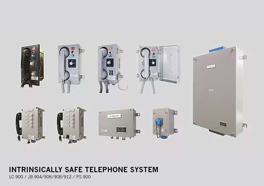 Intrinsically Safe Telephone system is designed to communicate at dangerous locations in the vessel (either at normal conditions or in the area with the possibility of explosive gas in case of accident), as it performs perfectly for the intrinsically safe construction. The structure of this system is carefully manufactured to be humidity, water, shock, and corrosion resistant in consideration of the maritime environment. The quality of voice signal and side tone was improved by adopting a low-noise OP-AMP in the telephone. Noises induced from the voice transmitter were remarkably reduced by using the circuits with high common mode rejection ratio (CMRR).-