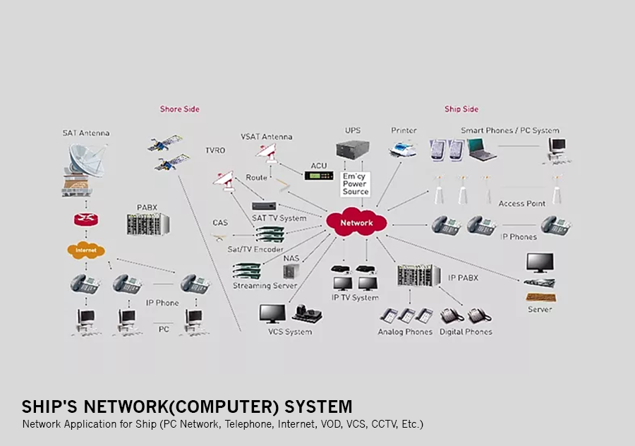 Network Application for Ship (PC Network, Telephone, Internet, VOD, VCS, CCTV, Etc.)